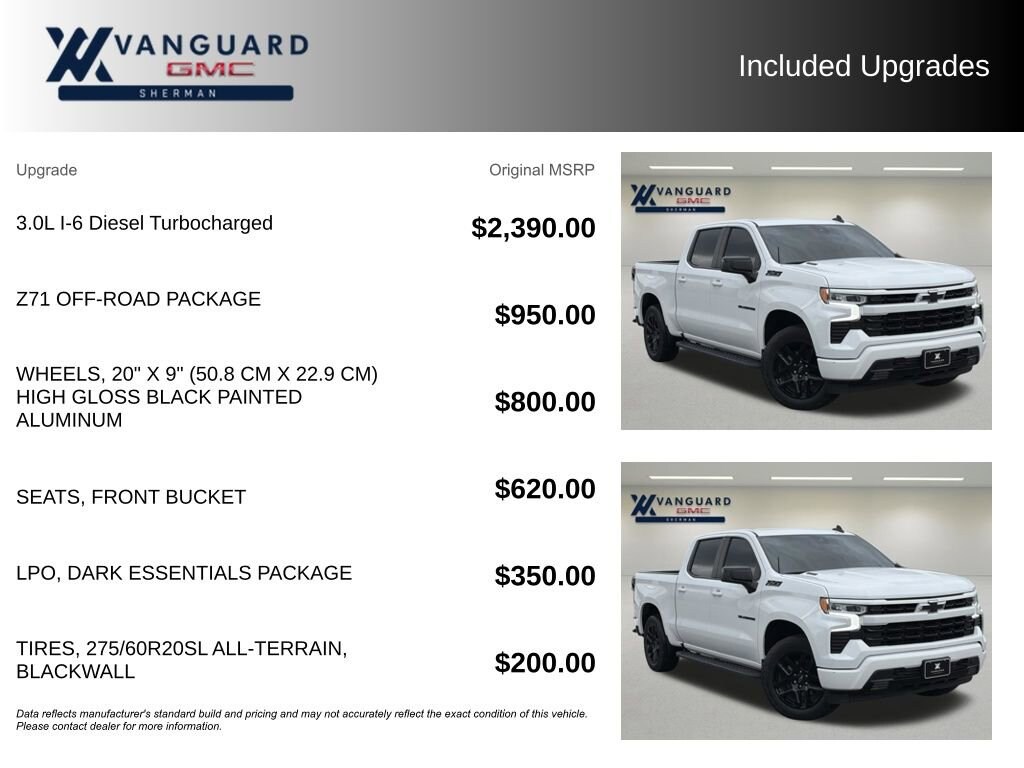 - Engine : Duramax 3L I-6 diesel direct injection, DOHC, variable valve control, intercooled turbo, diesel, engine with 305HP